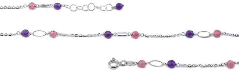 Kedvelt fazonú, mutatós, ametiszttel és turmalinnal ékített, ovális szemekkel díszített, "anker" típusú fehérarany lánc.