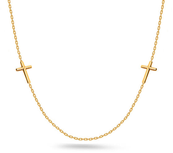 Finom nyaklánc sárga aranyból. Az Anker mintás láncot két kereszt díszíti, sima, magasfényű felülettel. Kérje meg kedvesét ezzel az eredeti ékszerrel. A nyaklánc hossza 420-440 mm tartományban változtatható.