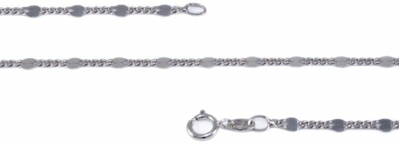 Klasszikus fazonú, fényes betétekkel kombinált, 3+1 szemkötésű ródiummal bevont pancer típusú aranylánc.