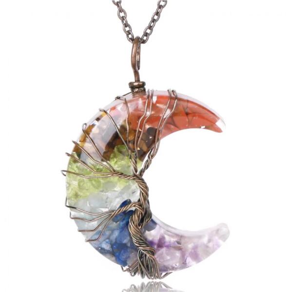 Halfmoon Nyakék Ez a nyakék félhold alakú medállal látványos és misztikus dizájnt kínál. A medál ezüst színű dróttal van körbetekerve, melynek mintája életfát idéz. Ez a szimbolikus mintázat a föld és az ég összekötését jelképezi, a növekedést és a tartósságot, mely az ékszernek mélyebb jelentést ad. A kialakítása nem csak látványra vonzó, hanem titokzato