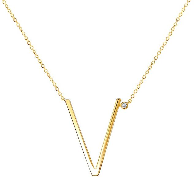 SAVICKI nyaklánc medállal - V betű: aranyozott ezüst fehér zafírral