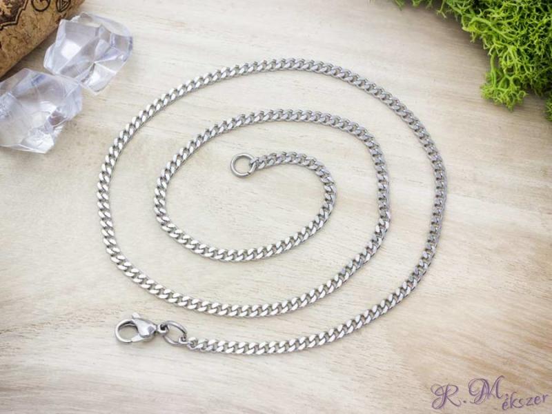 Pancer mintázatú ezüst színű nemesacélból készült nyaklánc.