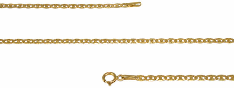 Klasszikus és kedvelt fazonú, üreges kialakítású, de masszív mutatós, 3+1 szemkötésű vastag aranylánc.