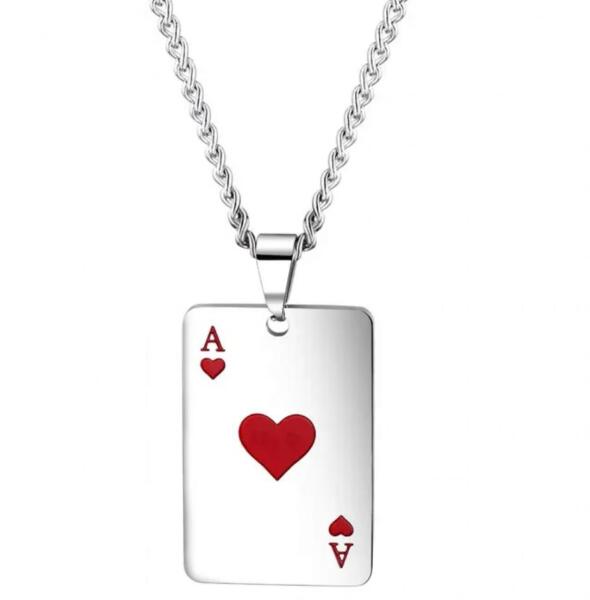 Spielkarte nyakék A nyakék szív ász alakú medállal tökéletes kiegészítő azok számára, akik szeretik a stílust, eleganciát és egy kis kockázatot az életükben. A minimalista és modern dizájnnak köszönhetően mindennapi viseletre alkalmas, de különleges alkalmakra is remekül illik. A kiváló minőségű anyagok és a kidolgozott megjelenés biztosítják, hogy ez a nyakék