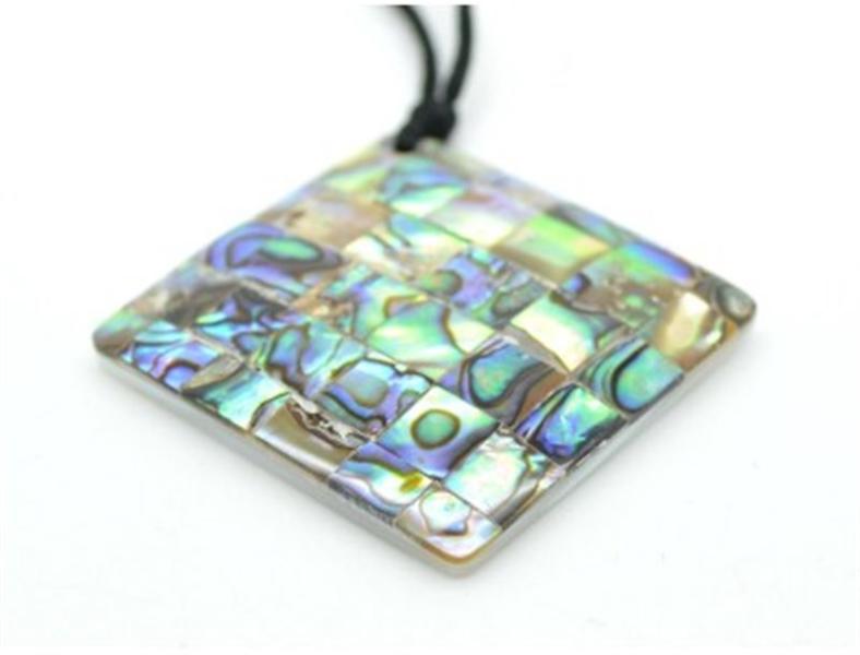 Különleges, csiszolt kagyló medál, fonallal, négyzet. méret: 3,5 x 3,5 cm súly: 11,89 gramm