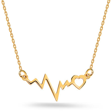 Nyaklánc 9 karátos sárga aranyból. Az Anker mintás láncot pulzus és szív medál díszíti. Az ékszerek felületi kezelése magas fényű.