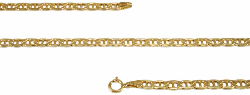 Kedvelt fazonú, pálcás betétekkel kombinált, üreges, de masszív szemekből készült "H-pancer" típusú aranylánc.