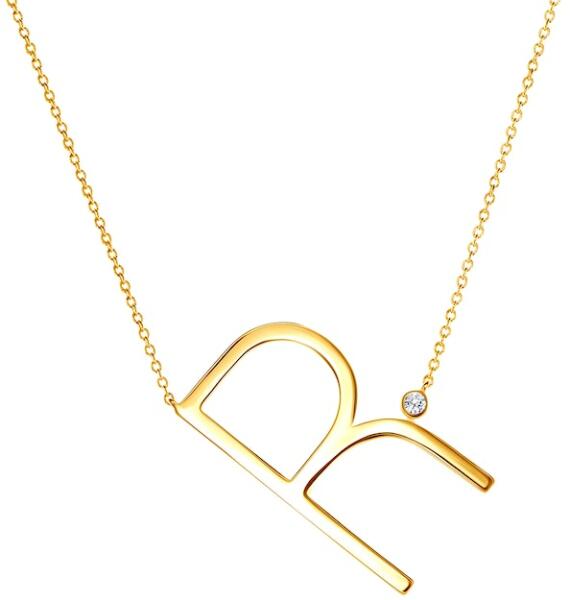SAVICKI nyaklánc medállal - R betű: aranyozott ezüst fehér zafírral