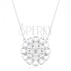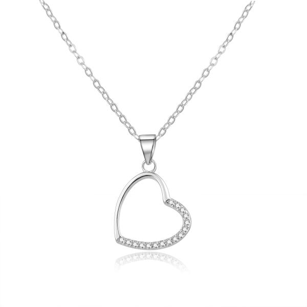 925 ezüst nyakék, amelyet egy vékony ovális szemű lánc alkot medállal. A medál szív körvonalakból áll, amelyeket csillogó cirkóniák egészítenek ki. A nyaklánc delfinkapcsos, állítható hosszúságú. Medál átmérője: 26 mmNyaklánc szélessége: 1 mmNyaklánc hossza: 400 mmHosszabbítható rész: 50 mmTeljes hossz kihúzással: 450 mm (+/- 5 %)Súly: 5,0 gFémjelzéssel ell