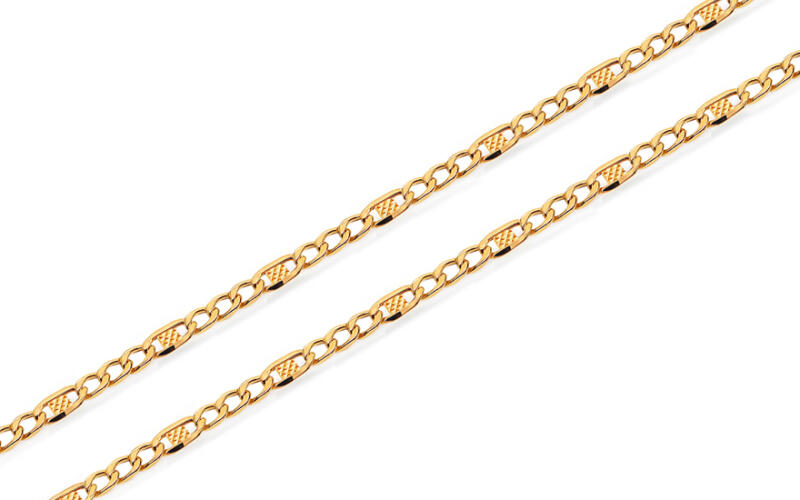 Az arany Figaro lánc lemezekkel sárga aranyból készült. A lánc három kerek, fényes lyukból áll, amelyek szabályos időközönként váltakoznak egy ovális lyukkal, amelyet finom pórusú lemez díszít. Medál nélküli hordozásra alkalmas, de medállal is kombinálható.