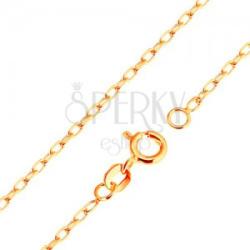 A 9K sárga arany nyaklánc Rolo mintával apró, függőlegesen összekapcsolt, ovális szemekből, amelyeknek sima és fényes a felülete. A nyaklánc kerekkapcsos zárszerkezettel rendelkezik . Nyaklánc szélessége: 1,8 mmNyaklánc hossza: 500 mm (+/- 5 %)Zárószem átmérője: 4 mmNyaklánc súlya: 3,35 gFémjelzéssel ellátott.