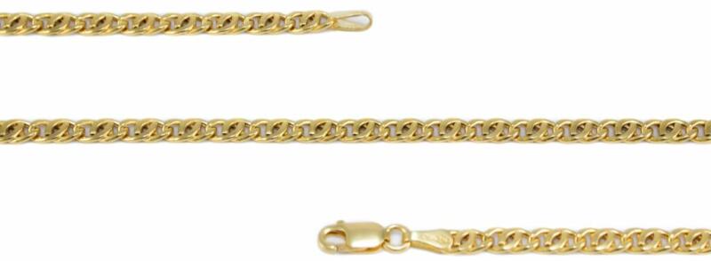 Modern stílusú, kedvelt fazonú, könnyített kialakítása ellenére mutatós, ez a "scharless" típusú fényes aranylánc.