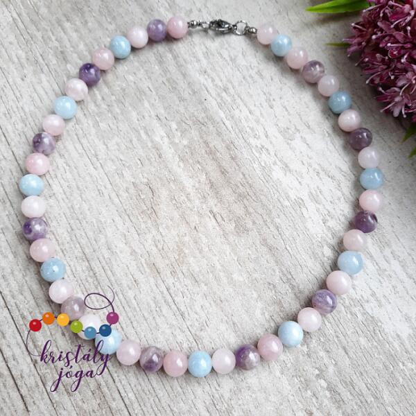 Az akvamarin , az ametiszt és a rózsakvarc tökéletes hármas. Segítik támogatják és erősítik egymás hatását. Az akvamarin kedvezően hat az agy tevékenységeire, erősíti az immunrendszert. Eloszlatja a félelmeket és a stresszt, megszűri az információkat, élesíti az érzékelést. Segít hogy meghalljuk lelkünk hangját, erősíti a toleranciát. Bátorít minket, hogy váll