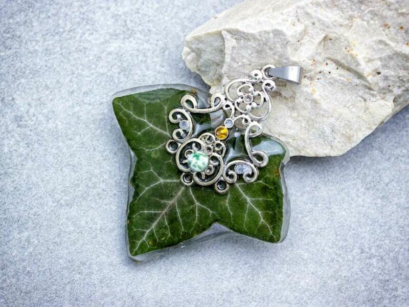 Préselt és szárított borostyán levéllel készült műgyanta nyaklánc. Kézműves termék! Az örök szerelem és a hűség szimbóluma a borostyán. Régen szent növényként tisztelték, és nagyobb becsben tartották mint mostanság. Szívből ajánljuk ezt a nyakláncot mindazoknak, akik egyedi, különleges és vonzó ékszert keresnek. Különleges ajándék lehet egy számodra igazá