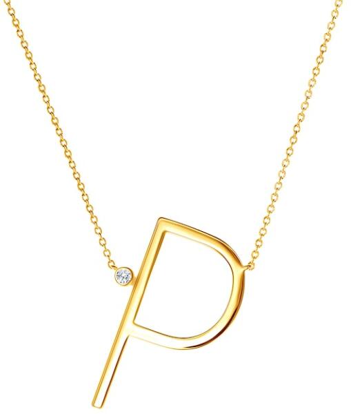 SAVICKI nyaklánc medállal - P betű: aranyozott ezüst fehér zafírral