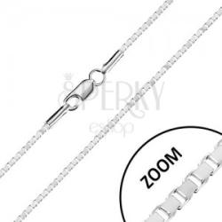 925 ezüst nyaklánc, szögletes szemekből. Az szemek váltakozva kapcsolódnak egymáshoz, enyhe spirális alakban. A zárszerkezet delfinkapcsos. Szélesség: 1,7 mmHossz: 460 mm (+/- 5 %)A záró láncszem átmérője: 3 mmSúly: 8,8 gFémjelzéssel ellátott.