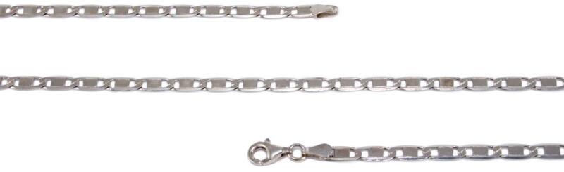 Klasszikus és kedvelt fazonú, üreges kialakítású, ródiummal bevont, mutatós, pálcikás pancer ezüstlánc.