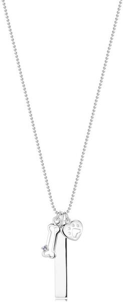 925 ezüstből készült nyaklánc egy katonai lánccal, amelyet három medál díszít. Az első medál kutyacsont formájú, amelyet egy apró tartóban lévő, csiszolt átlátszó cirkónia díszít. A másik medál egy vékony, sima téglalap. A harmadik medál egy kis szív, amelybe egy kutyamancs van gravírozva. A nyaklánc rugós gyűrűzárral rendelkezik. A csont mérete: 5 x 16 mmTégl