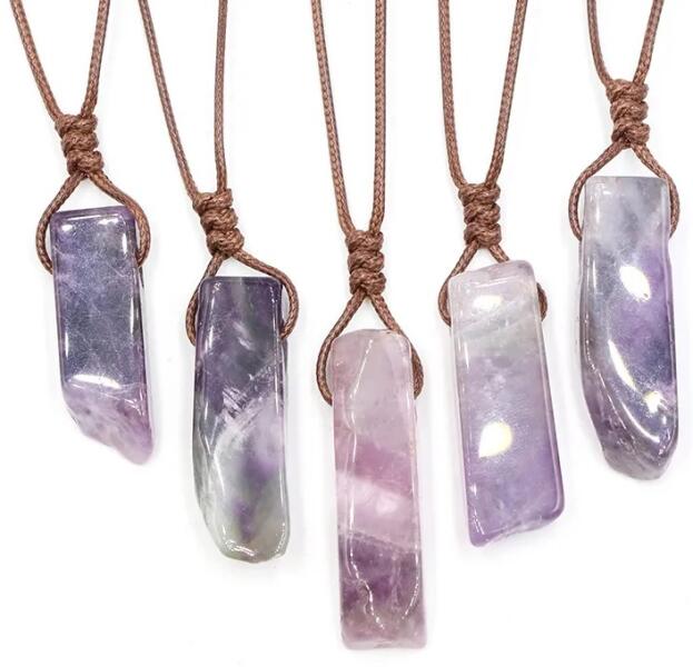 Colorful Stone Nyakék Különleges, kézzel készített Colorful Stone nyakék természetes ásványból, szuper áron. Az egyes medálok eltérhetnek méretben, formában és színben. Minden egyes darab eredeti. Tulajdonságok: A medál mérete: Véletlenszerű, nem egyformák A nyaklánc zsinór hossza: max. 66cm (széthúzható) Anyaga: Természetes ásvány Szín: Lila A csomagolás tartalma