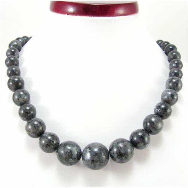Nagy méretű, 8-18mm-es, növekvő gyöngyökből készült larvikit nyaklánc.
