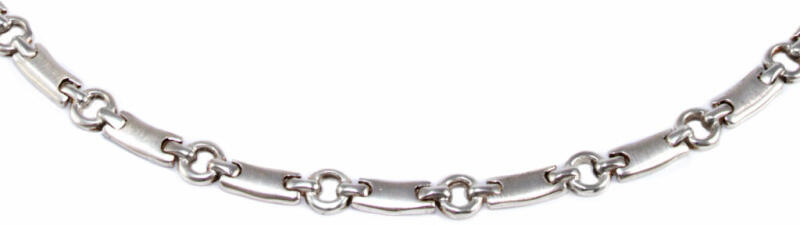 Klasszikus és kedvelt fazonú, áttört kialakítású, matt díszítéssel, stiftes ezüst nyakék.