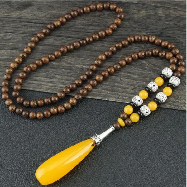 Alois Nyakék Ez az egyedi nyakék fából készült gyöngyökkel és érdekes színes medállal ideális kiegészítője az etnikai és bohém stílus kedvelőinek. A fából készült gyöngyök természetes és rusztikus megjelenést kölcsönöznek, amelyet élénk színes elemek egészítenek ki. A különböző színek és textúrák kombinációja ezt a nyakéket különlegessé teszi és