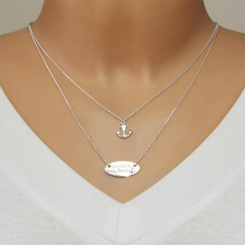 A 925 ezüst nyakláncot két lánc díszíti, amelyeken medálok függnek. A medálok horgony és hosszúkás tábla alakúak. A táblára a "You rock my boat" felirat és egy fekete horgony van gravírozva. A tábla lapos, fényes és sima. A láncokat ovális láncszemek alkotják, amelyek egymásra merőlegesen vannak összekapcsolva. A medálokat nem lehet levenni a láncról. Nyaklánc rugó