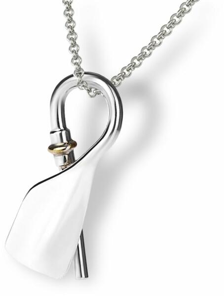 Kézzel készített medál, mely egy hajlított bárd lapátot ábrázol. Uniszex darab. Ideális ajándék evezős férfiaknak és lányoknak is. A nyaklánc nem része a terméknek, de külön rendelhető hozzá. Díszdobozban, így evezős ajándéknak is kitűnő. Anyaga: 925 sterling ezüst, a mandzsetta résznél 14 karátos arany Cikkszám: SDP005