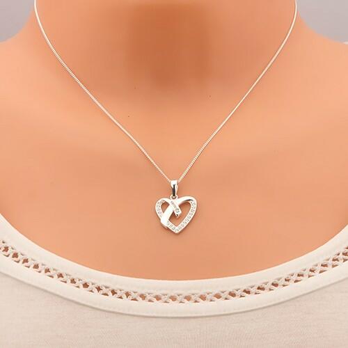 925 ezüst nyakék nyaklánc és medál. A nyaklánc vékony, ovális szemekből áll, a medál pedig szabálytalan szív alakú. A szívet apró kerek cirkóniák díszítik. A nyaklác delfinkapcsos. Medál mérete: 18 x 18 mmMedál súlya: 2,0 gNyaklánc szélessége: 1 mmNyaklánc hossza: 450 mm (+/- 5%) Nyaklánc súlya: 1,4 gFémjelzéssel ellátott.