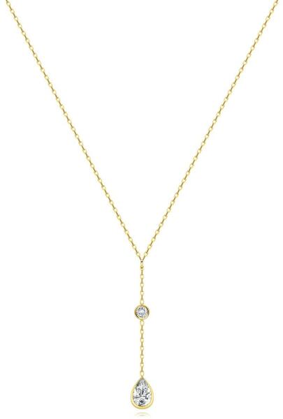 A medál mérete: 5 x 35 mmLánc szélessége: 1,1 mmA nyaklánc hossza: 400 mmHosszabbító lánc hossza: 20 mmTeljes hossz a meghosszabbítással: 420 mm (+/- 5%)A nyaklánc súlya: 1,23 gFémjel - Van. Ez a 14K sárga arany nyaklánc eleganciát és finomságot sugároz. Két átlátszó cirkóniából – egy kerekből és egy könnycsepp alakúból – készült medál egy finom láncon lóg,