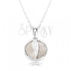 925 ezüst nyaklánc ovális szemeből áll, mely enyhén spirális. A medál kör alakú, középen krémszínű mázzal bevonva. A máz elülső részén egy angyalszárny található. A nyaklánc hossza állítható, delfinkapoccsal záródik. Medál átmérője: 15 mmLánc szélessége: 1,1 mm Hossz: 420 mmHosszabbító rész: 30 mmTeljes hossz: 450 mm (+/- 5%)Nyaklánc súlya: 3,3 gFémjelzé