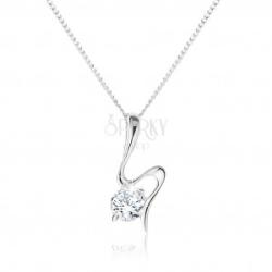 Nyakék 925 ezüstből ovális szemű láncból és medálból, mely hullámos szalag alakú. Átlátszó csillogó cirkónia díszíti foglalatba helyezve és két karommal megfogva. A nyakék delfinkapoccsal záródik és állítható a hósszúsága. A medál méretei: 7 x 17 mm A medál súlya: 1,2 g A lánc szélessége: 1 mmA lánc hossza: 450 mmA lánc súlya: 1,5 gFémjelzéssel ellátott.