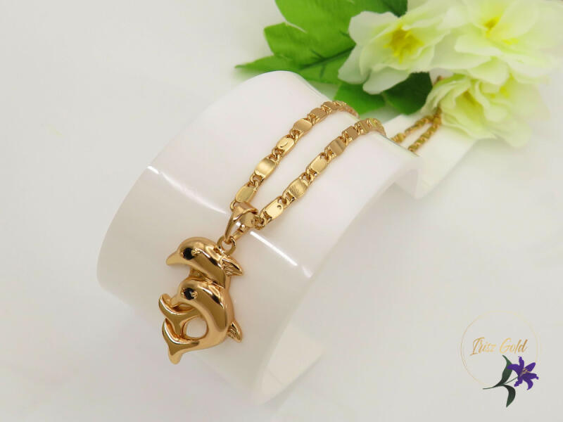 Gyönyörű páros delfin medálos nyaklánc Szin: 18 Kr Méret: 50cm /3,5mm Medál: 25x17mm A forgalmazott divatékszerek alapanyaga nikkel és ólommentes ezért többnyire nem okoznak allergiás tüneteket, nyugodtan hordhatják fémérzékeny emberek is. Általában nem színezik a bőrt és más divatékszerekhez képest nagyságrendekkel jobb kopásállósággal rendelkeznek. A fehér (ezüs