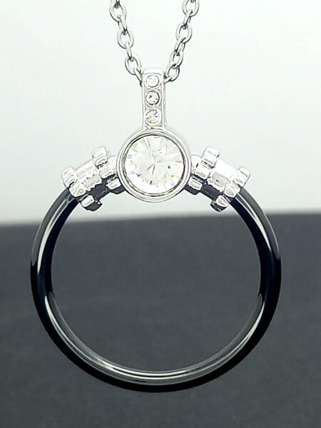 Kerek fekete kerámia medál és ezüstszínű nemesacél (316L) medál együttese. A medált szépen csillogó cirkónia kristály díszíti. A kristály ragasztott, peremezett foglalatban helyezkedik el. A nyaklánc nemesacélból (316L) készült. A nemesacél és a kerámia előnyös tulajdonságainak köszönhetően nem törékeny, nem kopik. Tartós, minőségi antiallergén ékszer. Nyaklá