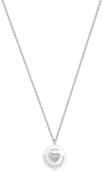 Az ezüst nyaklánc vékony ovális láncszemekből áll, amelyek függőlegesen kapcsolódnak egymáshoz. A medál tükörfényes lapos kör alakú, „MOM és „You are always in my HEART felirattal. A lemez közepén átlátszó mázzal bevont ezüst csillámokkal ellátott szív található. A nyaklánc rugós gyűrűzárral rendelkezik. Medál átmérője: 17 mmLánc szélesség: 1,3 mmNyakl