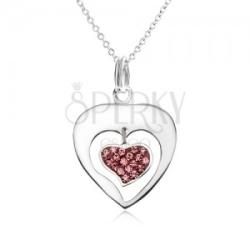 Nyakék 925 ezüstből, állítható hosszal, amely láncból és apró, ferdén összekapcsolt, ovális szemekből áll és egy fényes, szimetrikus szív körvonalú medálból, miközben a kontúr fentről lefelé szűkül. A medál felülete fényes és sima. A körvonal belsejében egy kisebb, egyenetlen szív talalható, mely felülete apró, rózsaszín cirkóniákkal van kirakva. Delfinkap