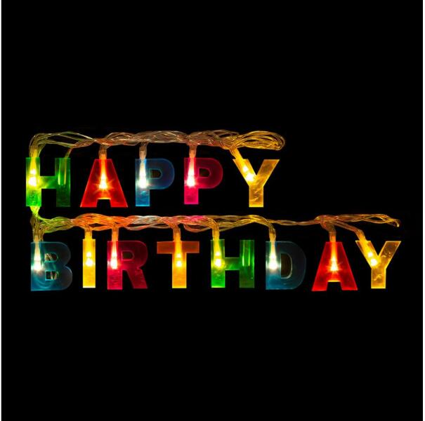 Díszlánc BOLDOG SZÜLETÉSNAPOT felirattal. Világítás színe: meleg fehér. Kábel hossza: 25 cm. 2x AA elemmel működik (nem tartozék).