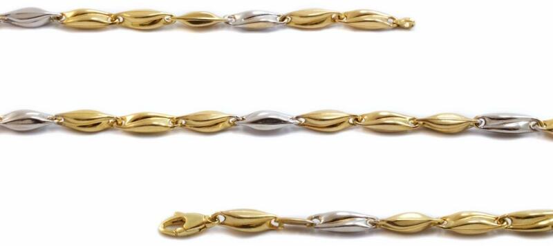 Modern fazonú, könnyed, üreges kialakítású, ródiumozott szemekkel díszített, bicolor arany nyaklánc.