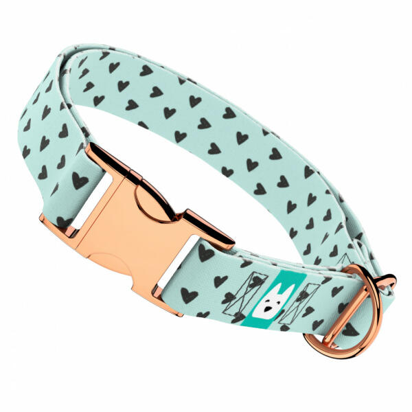 Szív mintás nyakörv kutyádnak különböző méretekben. Öltöztesd kedvenced hazai gyártású egyedi nyakörvünkbe, amit kérhettek trendi rose gold, mindig elegáns ezüst fém alkatrészekkel vagy könnyű műanyag csattal. Ahhoz, hogy ezeket a különleges mintákat meg tudjuk alkotni, műhelyünkben nyomtatjuk a hevedert. Minden terméket csak igény esetén gyártunk le, így elkerül