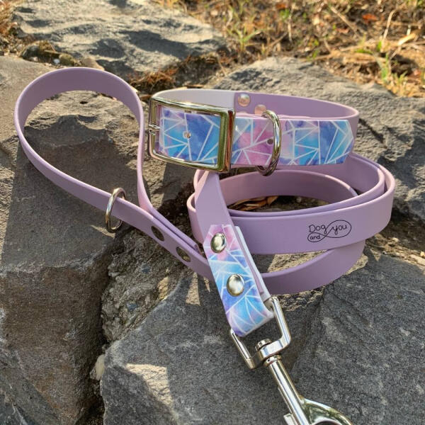 A szett egy 2,5 cm széles nyakörvből és egy 120 cm hosszú pórázból áll. A nyakörv állítható része mintás, a fix rész színe pasztell lila. A póráz színe pasztell lila, fogóján karika található. A BioThane® vízlepergető, így strandolásra is tökéletes. Pórázt kérheted díszrész nélkül is. A kép csak illusztráció, a legördülő sávokban megváltoztathatod a f