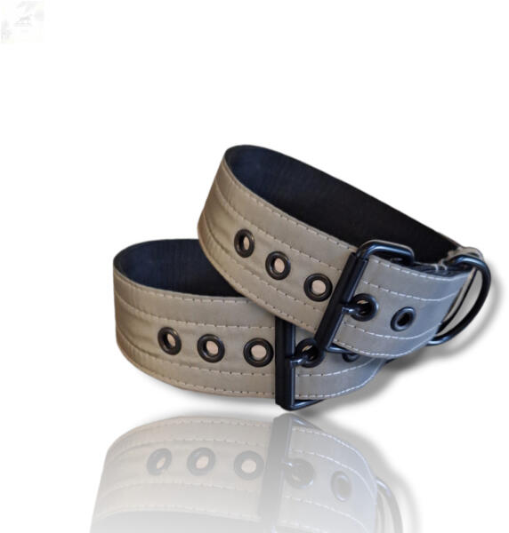 Happet fénnyvisszaverő nyakörv kutyáknak szürke színben. Erős nejlon anyagból készült kutyanyakörv. Különböző méretekben és színekben kapható. Könnyen kezelhető, de stabilan záró műanyag csattal, és erős fém csatológyűrűvel. A nyakörv átmérője állítható. A terméksorozatban hámok és pórázok is találhatók kutyák számára.