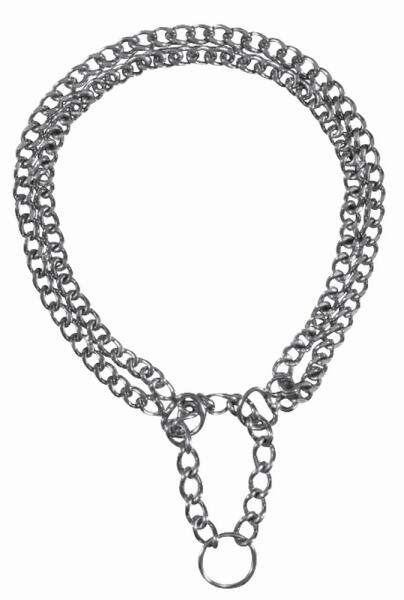 Trixie 2 soros kombinált króm fojtó nyakörv. Ideális kutyaiskolába és oktatási tevékenységekhez. A fojtó nyakörv a "húzós" kutyákra lett kifejlesztve, ami helyes használat mellett nem a kutya "megfojtását" szolgálja, hanem a gyors, rövid pórázrántásokkal korrigálni tudjuk a kutyát, amikor rohan vagy húz. Ha rendesen jön mellettünk lazul a nyakörv, ha elkezd húzni, va