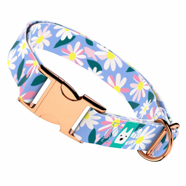 Virág mintás nyakörv kutyádnak különböző méretekben. Öltöztesd kedvenced hazai gyártású egyedi nyakörvünkbe, amit kérhettek trendi rose gold, mindig elegáns ezüst fém alkatrészekkel vagy könnyű műanyag csattal. Ahhoz, hogy ezeket a különleges mintákat meg tudjuk alkotni, műhelyünkben nyomtatjuk a hevedert. Minden terméket csak igény esetén gyártunk le, így elkerü