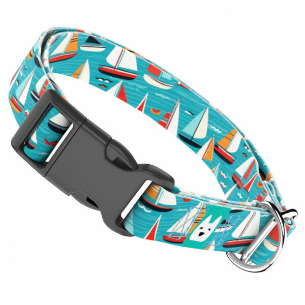 Balatoni nyár hangulatú, vitorlás csónak mintás nyakörv kutyádnak különböző méretekben. Öltöztesd kedvenced hazai gyártású egyedi nyakörvünkbe, amit kérhettek trendi rose gold, mindig elegáns ezüst fém alkatrészekkel vagy könnyű műanyag csattal. Ahhoz, hogy ezeket a különleges mintákat meg tudjuk alkotni, műhelyünkben nyomtatjuk a hevedert. Minden terméket csak ig