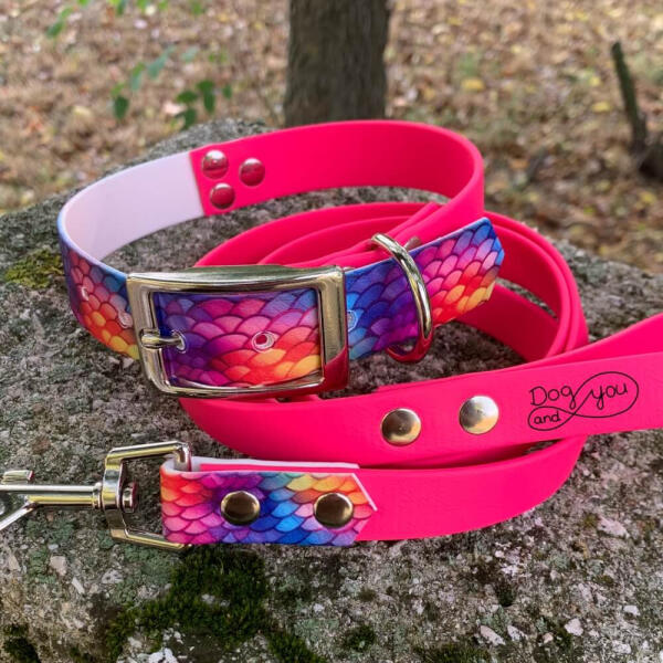 A szett egy 2,5 cm széles nyakörvből és egy 120 cm hosszú pórázból áll. A nyakörv állítható része mintás, a fix rész színe magenta. A póráz színe magenta, fogóján karika található. A BioThane® vízlepergető, így strandolásra is tökéletes. Pórázt kérheted díszrész nélkül is. A kép csak illusztráció, a legördülő sávokban megváltoztathatod a fémkellék t