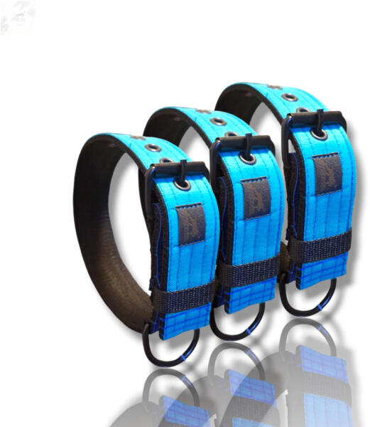 Ez a strapabíró, három réteg hevederből készült nyakörv kifejezetten nagyobb testű, erős testfelépítésű kutyák számára lett tervezve. A nyakörv nagy teherbírású hegesztett acél szerelékekkel és szegecsekkel van megerősítve, így még a legvadabb, legerősebb kutyák is biztonságban tarthatók vele. A nyakörv strapabíró kialakítása és anyaghasználata biztosítja, h