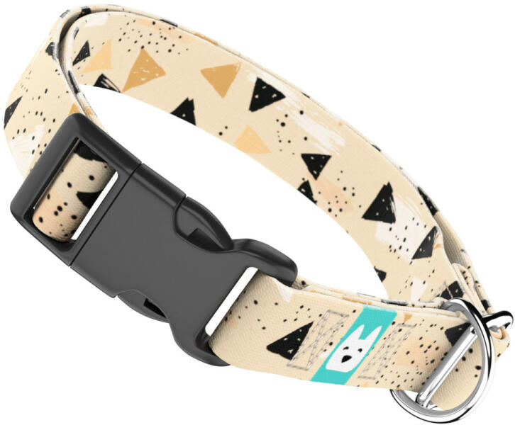 Absztrakt háromszög mintás nyakörv kutyádnak különböző méretekben. Öltöztesd kedvenced hazai gyártású egyedi nyakörvünkbe, amit kérhettek trendi rose gold, mindig elegáns ezüst fém alkatrészekkel vagy könnyű műanyag csattal. Ahhoz, hogy ezeket a különleges mintákat meg tudjuk alkotni, műhelyünkben nyomtatjuk a hevedert. Minden terméket csak igény esetén gyártunk l
