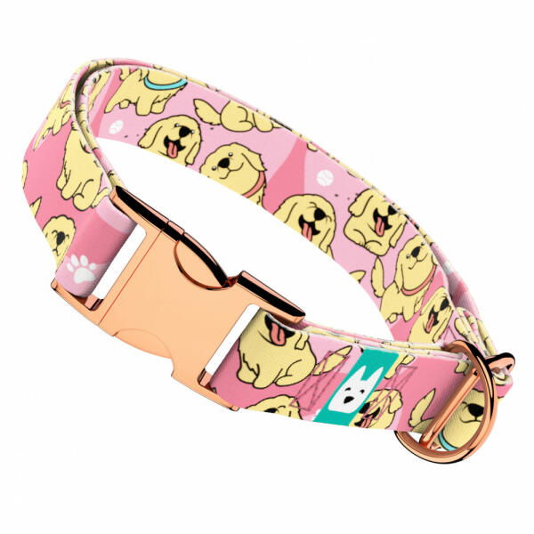 Golden retriever mintás nyakörv kutyádnak különböző méretekben. Öltöztesd kedvenced hazai gyártású egyedi nyakörvünkbe, amit kérhettek trendi rose gold, mindig elegáns ezüst fém alkatrészekkel vagy könnyű műanyag csattal. Ahhoz, hogy ezeket a különleges mintákat meg tudjuk alkotni, műhelyünkben nyomtatjuk a hevedert. Minden terméket csak igény esetén gyártunk le, í