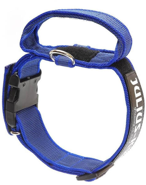 Julius-K9 Nyakörv Kék biztonsági zárral és fogóval 49-70 cm _x0009_ Hossz: 49-70 cm, szélesség: 5 cm Color & Gray termékek - német hevederek, magyar tervezés A középkarikánál kialakított, zárható fogó lehetővé teszi a kutya stabil megtartását. A stabil rögzítésről nagy teherbírású csat és biztonsági hevederzár gondoskodik. A nyakörv heveder anyaga könnyen tis