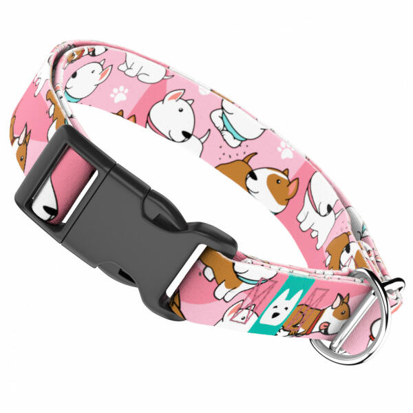 Bullterrier mintás nyakörv kutyádnak különböző méretekben. Öltöztesd kedvenced hazai gyártású egyedi nyakörvünkbe, amit kérhettek trendi rose gold, mindig elegáns ezüst fém alkatrészekkel vagy könnyű műanyag csattal. Ahhoz, hogy ezeket a különleges mintákat meg tudjuk alkotni, műhelyünkben nyomtatjuk a hevedert. Minden terméket csak igény esetén gyártunk le, így el
